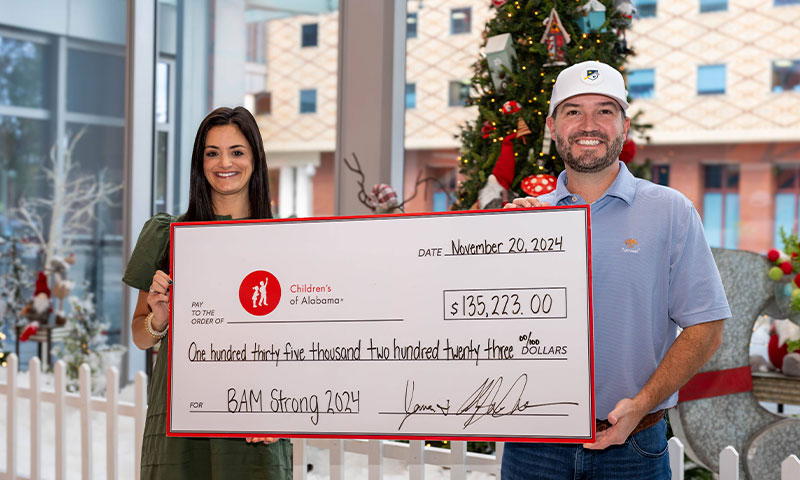 While Brayden lost his courageous battle in 2019, the Moore family was determined to give back and keep his legacy alive. With that spirit, they created the BAM Strong Memorial Golf Tournament to benefit Children’s of Alabama. The money raised furthers research, resources and financial aid to patient families in cardiology, nephrology and neurology. Over the last five years, BAM Strong has raised an astounding $583,000. This incredible milestone has made a profound impact on the lives of countless children, and it simply wouldn’t have been possible without the dedication of community sponsors and donors.